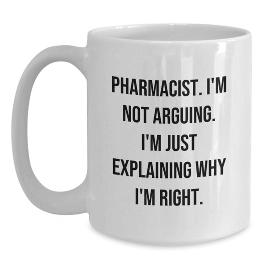 Funny Pharmacist Gifts for Men, White Coffee Mug, Christmas Unique, 'I'm Not Arguing. I'm Just Explaining Why I'm Right.' Quotes, Gifts from Friends, Coworkers, Family