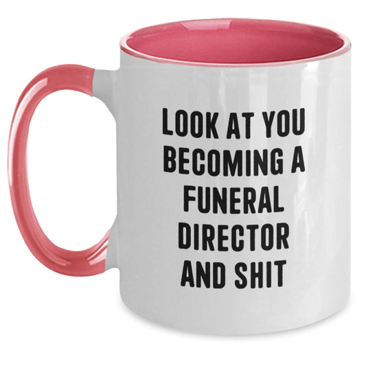 Funny Gifts from Men to Funeral Director Friends and Coworkers - Look At You Becoming A Funeral Director And Shit Two Tone Coffee Mug for Christmas Unique Presents