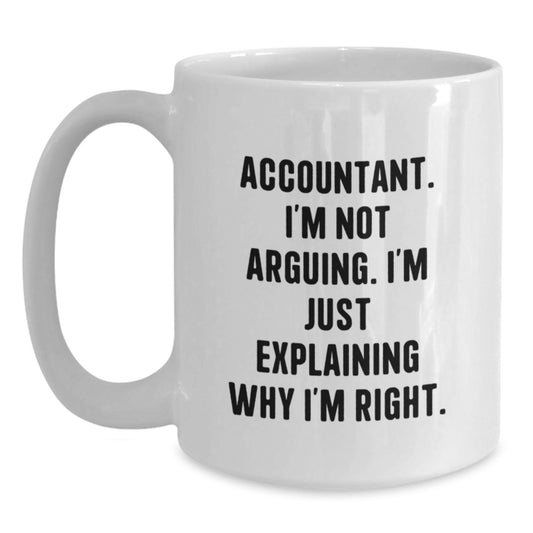 Funny Accountant Gifts for Men, Inspirational Two Tone Coffee Mug with 'Accountant, I'm Not Arguing. I'm Just Explaining Why I'm Right.' Quote, Black and White Christmas Unique Gifts from Friends