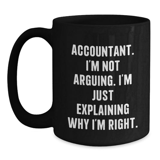 Funny Accountant Gifts for Men, Black Coffee Mug - 'I'm Not Arguing, I'm Just Explaining Why I'm Right' Perfect Christmas Unique Gift for Friends, Coworkers, Family