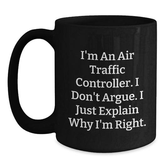 Funny Air Traffic Controller Gifts for Men, Black Coffee Mug, I'm An Air Traffic Controller. I Don't Argue. I Just Explain Why I'm Right. - Unique Christmas Unique Gifts from Friends