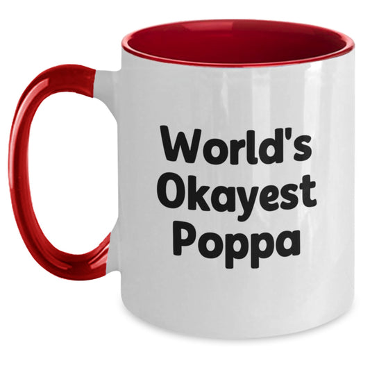 Funny Poppa Gifts from Family - World's Okayest Poppa Two Tone Coffee Mug for Dad this Christmas