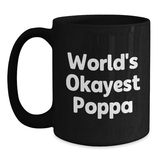 Funny Gifts from Poppa for Christmas Unique - Black Coffee Mug with 'World's Okayest Poppa' Quote