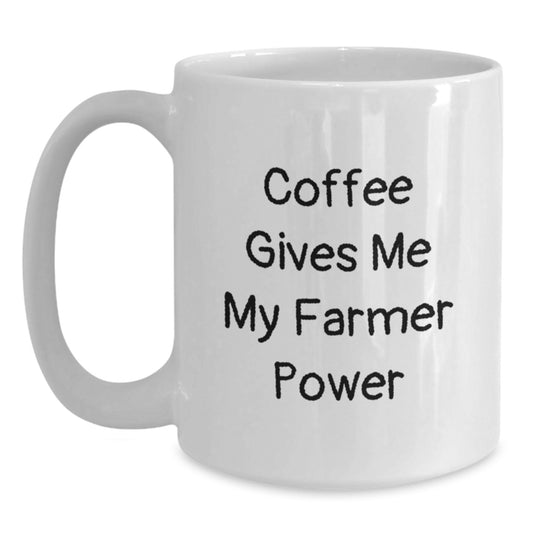 Funny Farmer Gift, White Coffee Mug with 'Coffee Gives Me My Farmer Power', Unique Birthday Presents for Men, Women, Friends, Family, Farmer Enthusiasts, Farmers' Delight, Farmer's Daily Cup