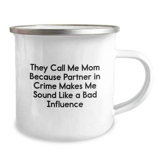 Funny Mom Gifts from Family for Her Graduation Celebration, They Call Me Mom Because Partner In Crime Makes Me Sound Like A Bad Influence, 12 oz Camping Mug