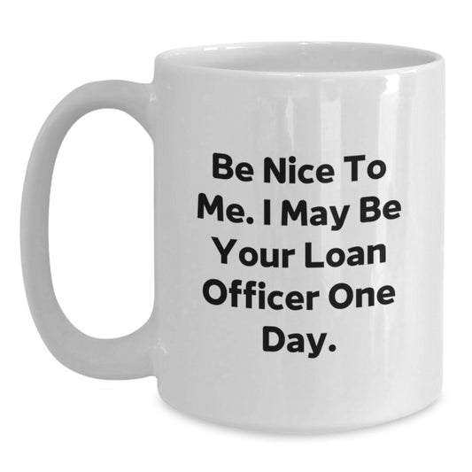 Funny Loan Officer Gifts from Friends, Be Nice To Me. I May Be Your Loan Officer One Day., White Coffee Mug for Birthday, Gifts for Loan Officer