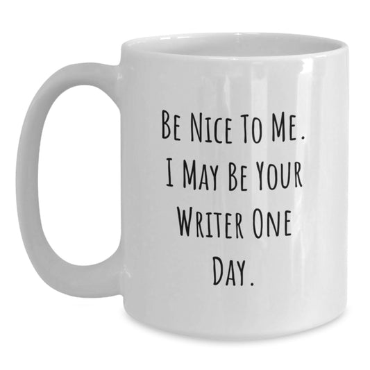 Writer Gifts from Friends, Cute White Coffee Mugs for Birthday - 'Be Nice To Me. I May Be Your Writer One Day.'
