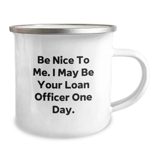 Funny Loan Officer Quote Gifts for Men, Camping Mug for Loan Officer, Be Nice To Me. I May Be Your Loan Officer One Day., Gifts from Friends, Gifts for Loan Officer Birthday