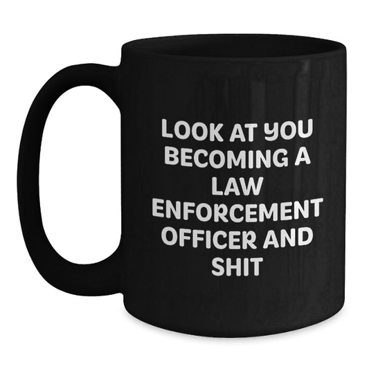 Funny Law Enforcement Officer Gifts, Black Coffee Mug for Birthday - 'Look At You Becoming A Law Enforcement Officer And Shit' from Men to Law Enforcement Officer Friends
