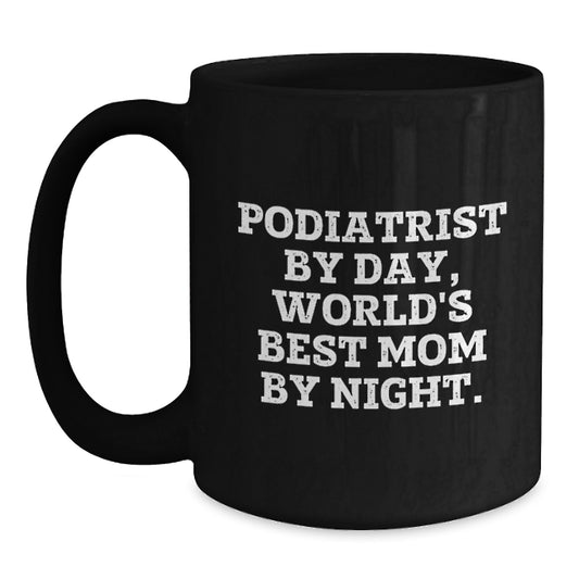 Funny Podiatrist Gifts for Graduation - 'Podiatrist By Day, World's Best Mom By Night.' Black Coffee Mug, Gifts from Family to Podiatrist