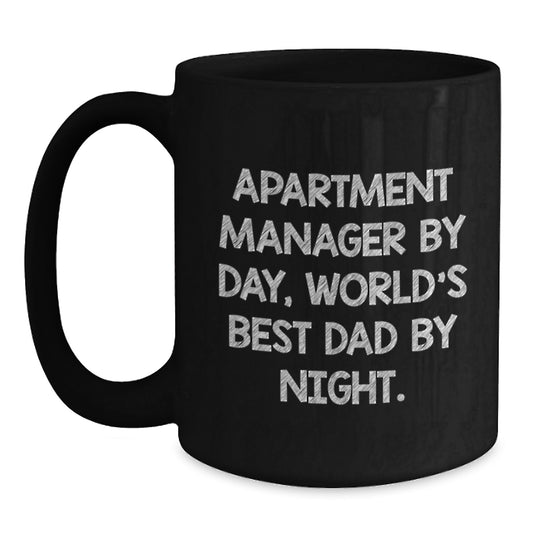 Funny Apartment Manager Gifts from Men, Unique Black Coffee Mug for Graduation, 'Apartment Manager By Day, World's Best Dad By Night' Quote