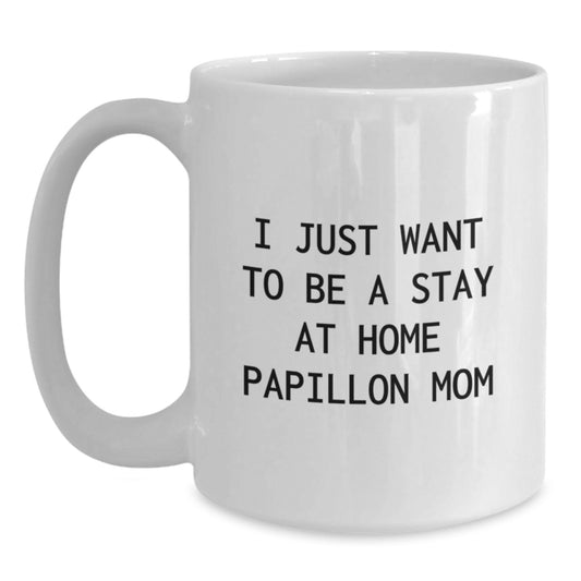 Papillon Dog Mom's Funny Gift from Friends to Family - I Just Want To Be A Stay At Home Papillon Mom, White Coffee Mug, Birthday Unique Gifts