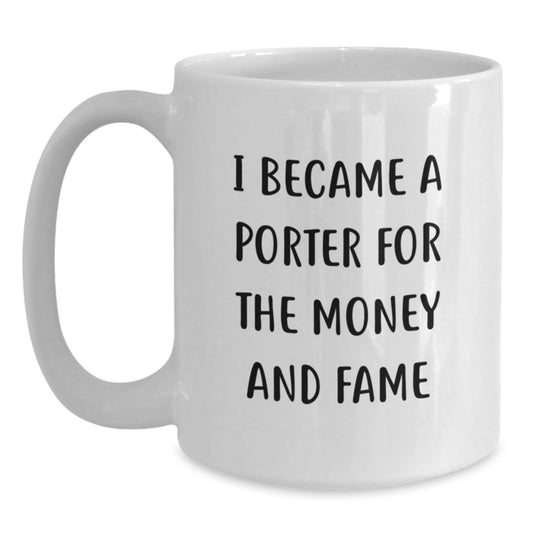 Funny Porter Gifts, I Became A Porter For The Money And Fame, Two Tone Coffee Mugs for Birthday, Gifts from Family, for Porter