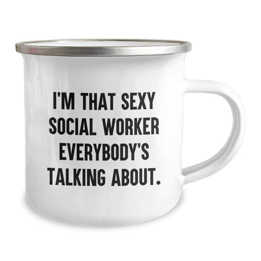 Funny Social Worker Camping Mug Gifts from Friends for Birthday Celebration - I'm That Sexy Social Worker Everybody's Talking About.
