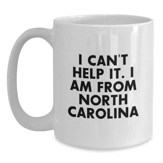 Funny North Carolina Gifts From Friends And Family, I Can't Help It. I Am From North Carolina White Coffee Mug, Birthday Unique Gifts for Men Women