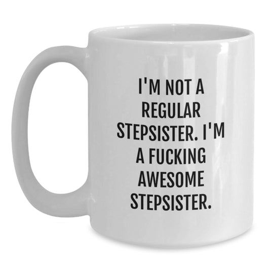 Funny Stepsister Birthday Unique Gift, White Coffee Mug - I'm Not A Regular Stepsister. I'm A F--king Awesome Stepsister. from Family, Friends, and Coworkers Gifts for Stepsisters