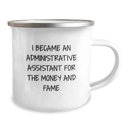 Funny Administrative Assistant Gifts from Friends for Birthday - I Became An Admin Assistant For The Money And Fame Quote Camping Mug, 12 oz Stainless Steel Enamel Finish