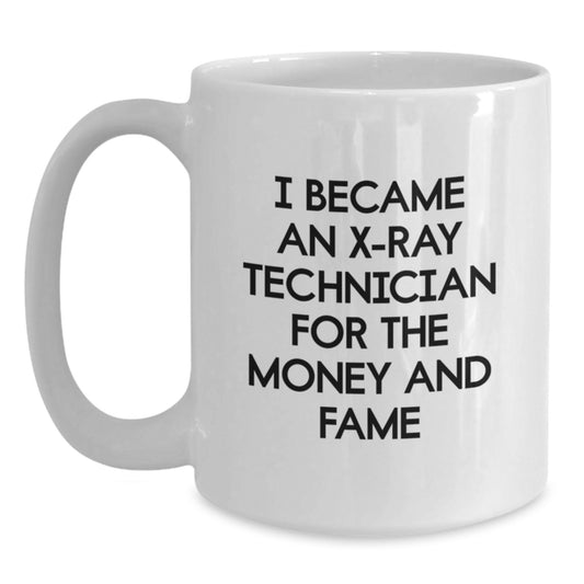 X-Ray Technician Funny Gifts, White Coffee Mug for Birthday, 'I Became An X-ray Technician For The Money And Fame' - Gifts from Friends to X-Ray Technician