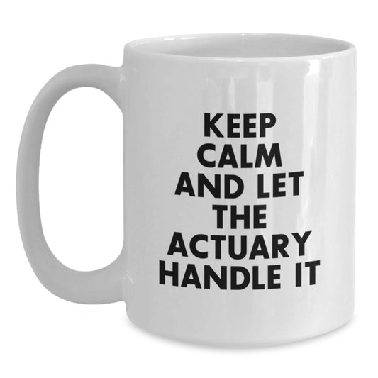 Funny Actuary White Coffee Mug, Keep Calm And Let The Actuary Handle It, Gifts from Friends for Actuary's Birthday