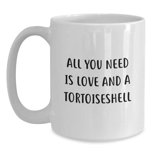 Funny Tortoiseshell Cat Lovers Gifts from Friends for Birthday Unique White Coffee Mugs with All You Need Is Love And A Tortoiseshell Quote