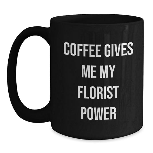 Funny Florist Gifts for Her from Friends, Black Coffee Mug with 'Coffee Gives Me My Florist Power' Quote, Birthday Unique Gifts
