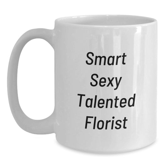 Funny Florist Gifts from Friends Birthday White Coffee Mug - 'Smart Sexy Talented Florist' Quote
