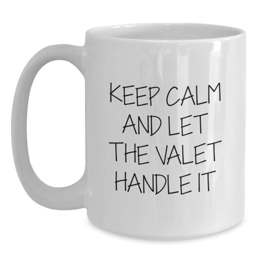 Funny Valet Gifts from Friends for Him - Keep Calm And Let The Valet Handle It White Coffee Mug, Birthday Unique Gifts