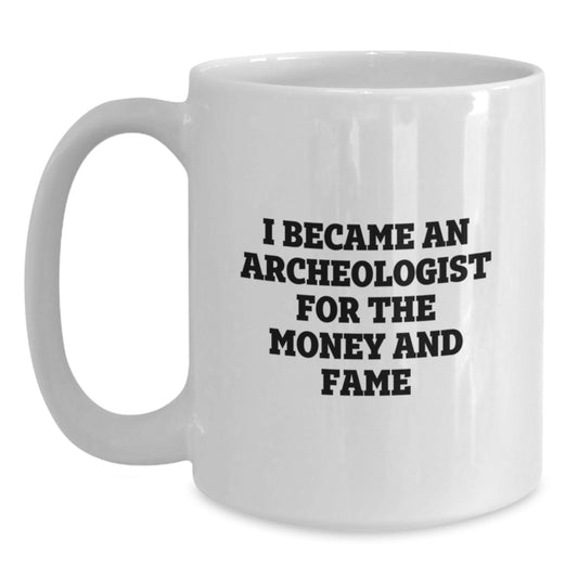 Funny Archeologist White Coffee Mug, Gifts from Friends, Gifts for Archeologists, White Coffee Mugs, I Became An Archeologist For The Money And Fame, Birthday Unique Gifts