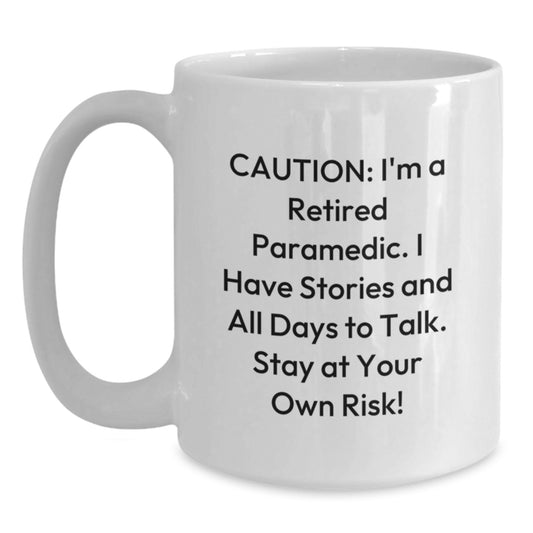 Funny Paramedic White Coffee Mug from Friends - 'Caution: I'm A Retired Paramedic..'