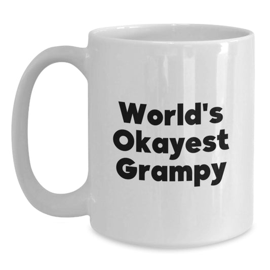 Grampy Gifts from Family, World's Okayest Grampy Funny Quote on White Coffee Mug for Birthday, Gifts for Grampy