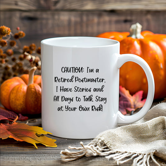 Funny Postmaster Retirement Gift, White Coffee Mug for Birthday, 'Caution: I'm A Retired Postmaster...' - Gifts from Men to Friends, Coworkers, or Family