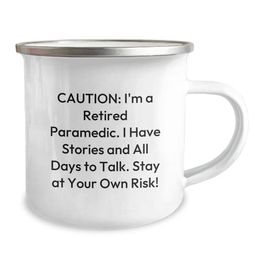 Paramedic Humor Gifts - 'Caution: I'm A Retired Paramedic..' 12 oz Stainless Steel Camping Mug with Enamel Finish