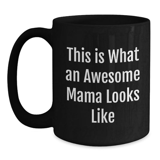 Funny Mama Gifts from Friends, Mama Black Coffee Mug, 'This Is What An Awesome Mama Looks Like' Quote, Birthday Unique Gifts for Mama