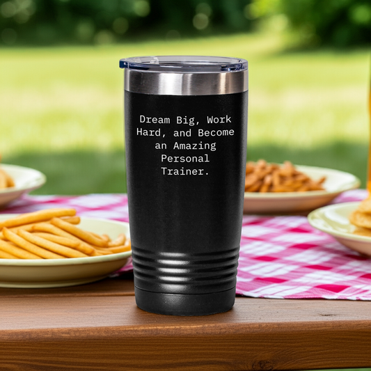 Inspirational Personal Trainer Gifts from Friends, Gifts for Personal Trainers on Birthday, 'Dream Big, Work Hard, And Become An Amazing Personal Trainer.' Tumbler