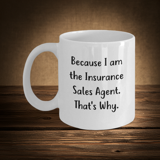 Funny Insurance Sales Agent Gifts for Him or Her - Because I Am The Insurance Sales Agent. That's Why. - White Coffee Mug, 11oz or 15oz, Ceramic, Microwave and Dishwasher Safe