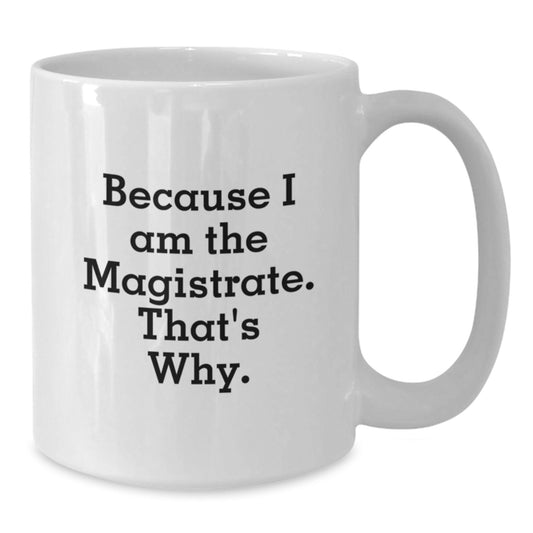 Magistrate Humor White Coffee Mug, Gifts from Friends, Birthday Unique Gifts for Magistrate, Because I Am The Magistrate. That's Why.