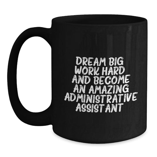 Dream Big, Work Hard, Become Amazing Administrative Assistant Gifts from Coworkers, Black Coffee Mug for Birthday