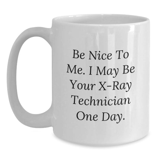 Funny X-Ray Technician Gifts from Friends for Birthday Unique White Coffee Mugs with Inspirational Quote, 'Be Nice To Me. I May Be Your X-ray Technician One Day.'