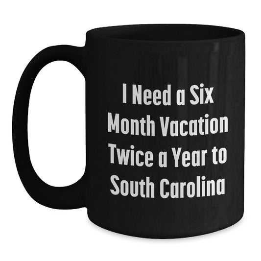 Funny South Carolina Gifts for Men from Friends - 'I Need A Six Month Vacation Twice A Year' Black Coffee Mug for Birthday