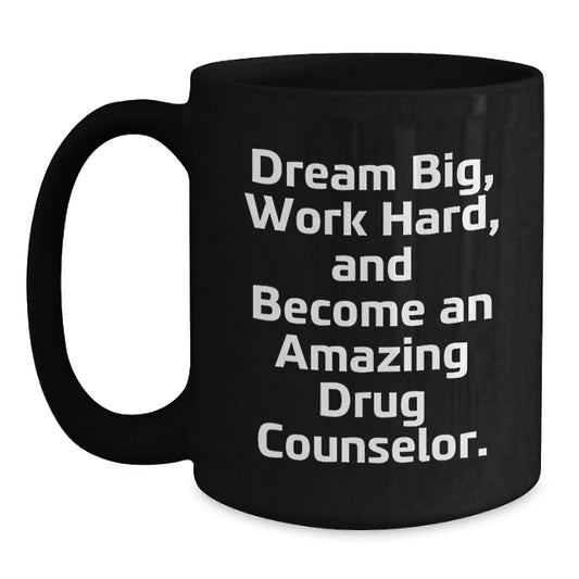 Gifts from Friends to Amazing Drug Counselors - 'Dream Big, Work Hard' Black Coffee Mug for Birthday
