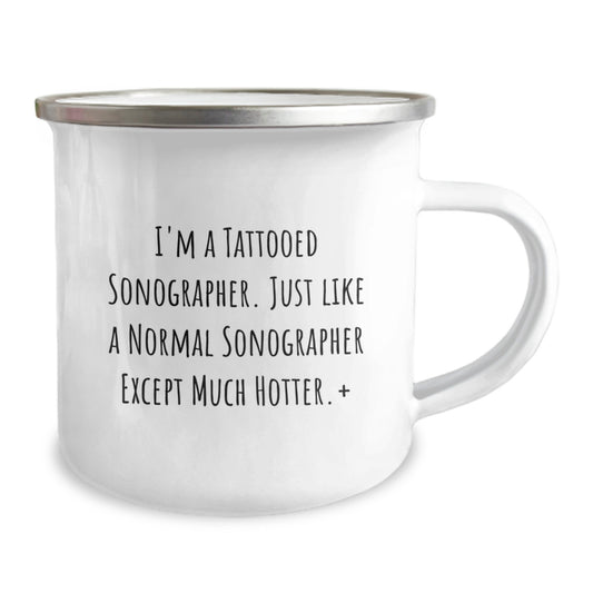Sonographer Gifts, Funny Camping Mug for Birthday, 'I'm A Tattooed Sonographer' Quote, Gifts from Friends, Gifts for Sonographer
