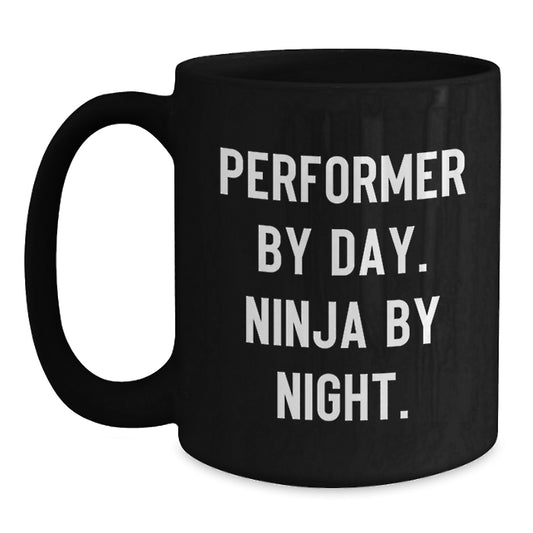 Performer By Day, Ninja By Night Black Coffee Mug Gifts for Graduation, Funny Quote for Performer Friends and Family