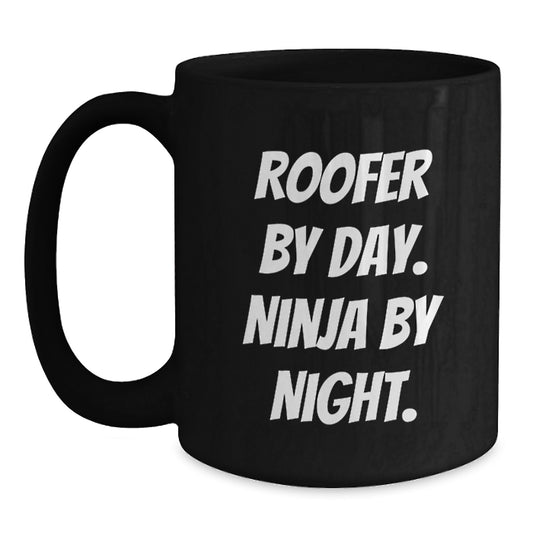 Roofer Humor Gifts from Friends for Roofer By Day Ninja By Night Black Coffee Mug, Funny Graduation Unique Gifts