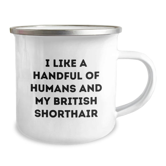 Funny British Shorthair Cat Gifts for Men, Women, Friends, and Family - 'I Like A Handful Of Humans And My British Shorthair' Quote on Camping Mug, Graduation Unique Gifts from Men to Coworkers