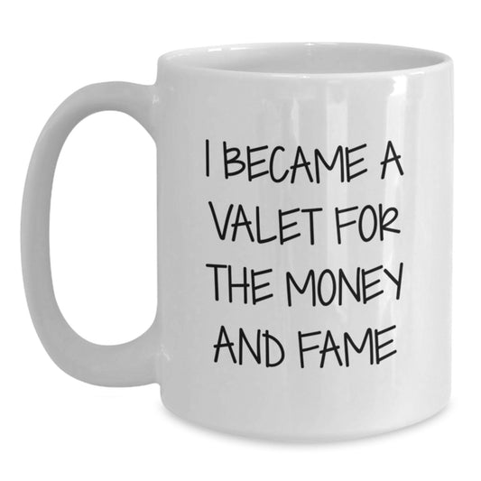 Funny Valet Gifts - I Became A Valet For The Money And Fame, White Coffee Mug, Graduation Unique Gifts from Friends