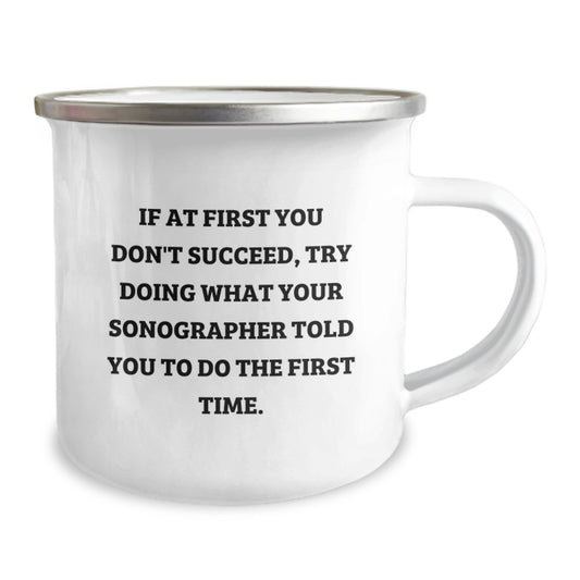 Sonographer Humor Gifts from Friends for Graduation Unique Gifts, Funny Camping Mug with Quote, 12 oz Stainless Steel Enamel Finish