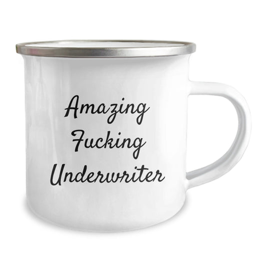 Funny Underwriter Gift, Amazing Quotes, 12 oz Camping Mug for Graduation, Gifts from Friends, Unique Underwriter Gifts