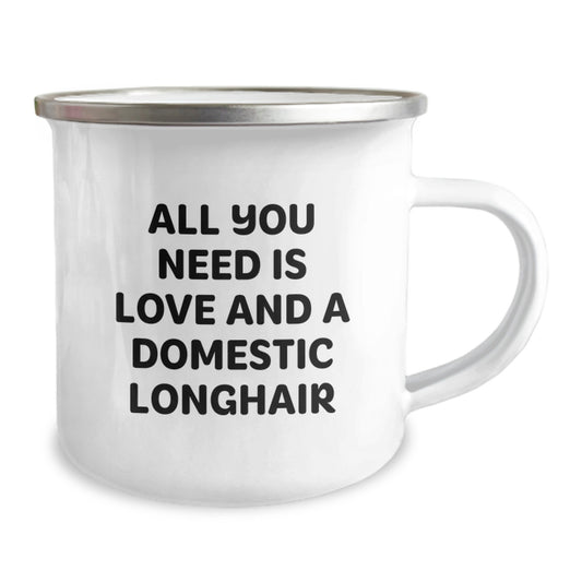Funny Domestic Longhair Cat Gifts from Friends for Graduation Unique Gifts - 'All You Need Is Love And A Domestic Longhair' Camping Mug