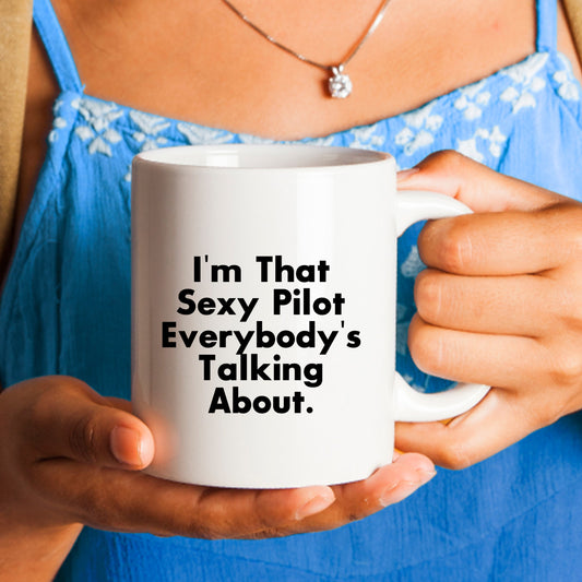 Funny Pilot Gifts from Friends and Family for Graduation - White Coffee Mug, I'm That Sexy Pilot Everybody's Talking About.