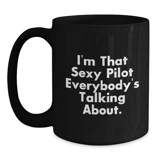 Funny Pilot Gifts for Men from Friends - I'm That Sexy Pilot Everybody's Talking About. Black Coffee Mug for Graduation